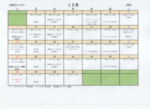 パソコンの不具合で、12月のカレンダーアップが遅くなりました。すみませんでした。